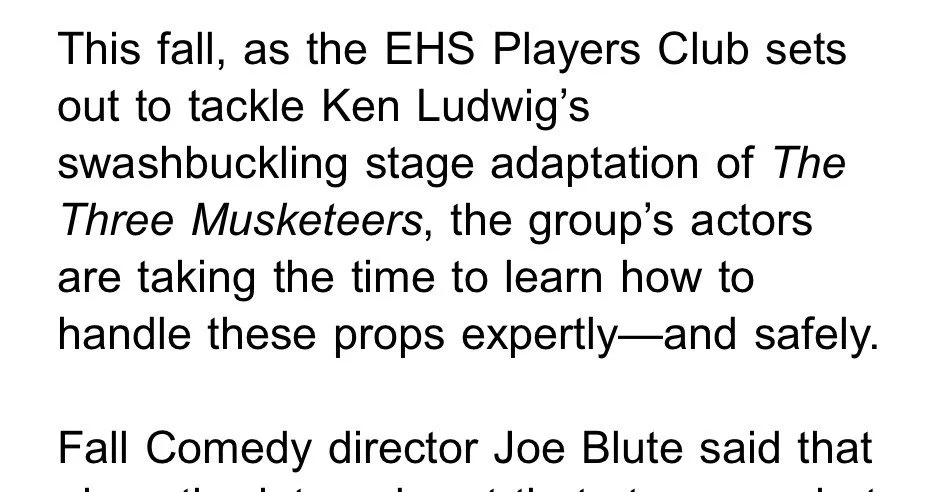 EUFSD Newsletter by Michael Smith on 'Ken Ludwig’s ‘The Three Musketeers’